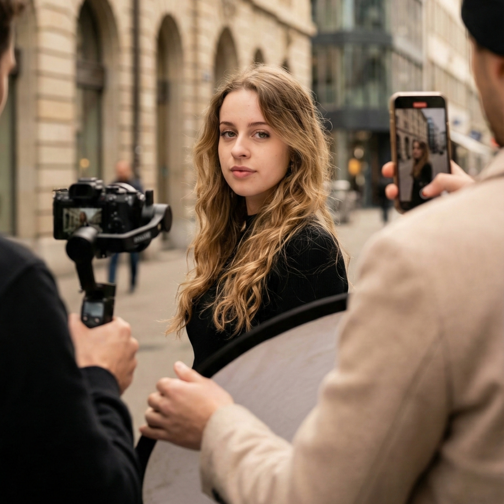 Mein Name ist Gina. Ich habe Multimedia Production mit dem Schwerpunkt visuelles Design, digitale Medien und Content Creation studiert. Während meines Studiums habe ich in den Bereichen Grafikdesign, audiovisuelle Medien und Konzeptentwicklung gearbeitet und dabei praktische Erfahrung in der Gestaltung und Produktion multimedialer Inhalte gesammelt. Ich kombiniere gerne Kreativität mit Struktur und verwandle Ideen in klare visuelle Geschichten.